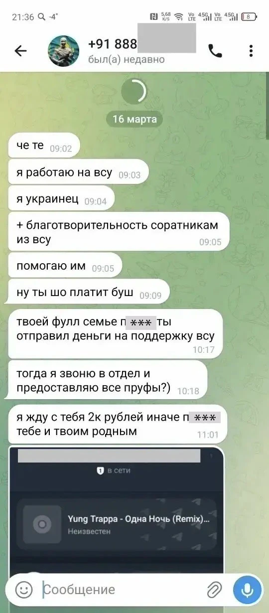 Он требовал ещё 2 тысячи рублей, угрожал сдать его в полицию и расправиться с семьёй.
