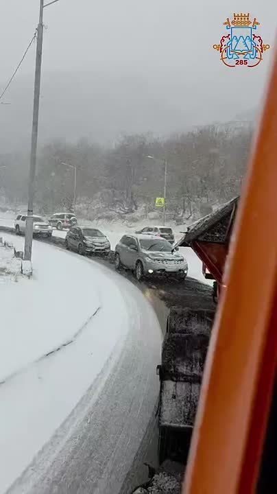 На видео — Ленинский район. Там, уже традиционно, стоит большая пробка. Очевидцы сообщают, что очень скользко.